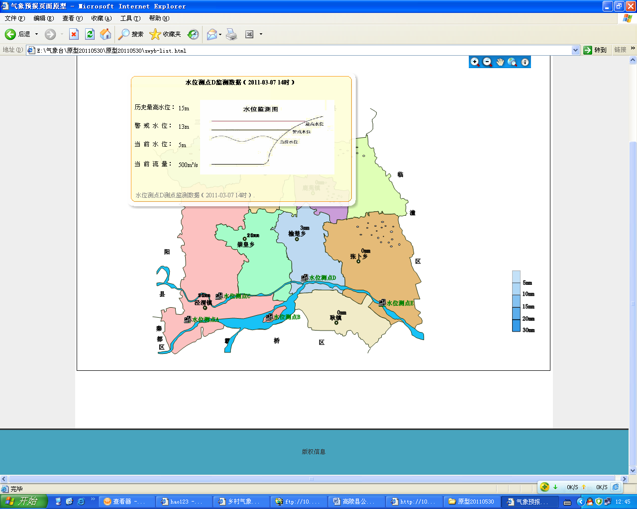 (2)实时雨水情监测:采集水文、气象部门在高陵境内及其泾河、渭河上游相关地区设置的雨量站、水文站/水位站、水库水情站的实时水雨情信息,信息类型包括降水量、河道水情(水位/流量)、水库水情(水位/出、入库流量)等,信息采集方式包括自动采集和人工监测拍报。