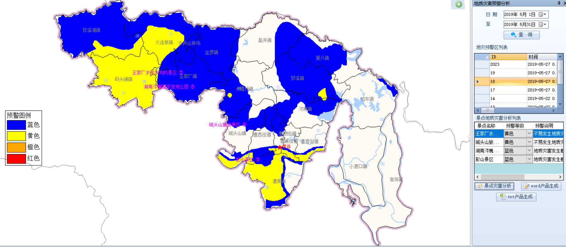 澧县智慧专业气象服务平台基于大数据、云平台、GIS分析技术、专业气象服务技术,面向各行业用户对气象服务实际需求而研发的商业化运营平台,包括采集、监控、制作、服务四大功能系统。其中采集系统是后台自动运行的系统,可实现对基础气象数据的实时采集,以CIMISS系统采集包括全国国家站、澧县自动站、分钟降水、分钟温风湿压、地面要素、高空要素、全国城镇报、澧县城镇报、雷达图、土壤墒情、地面要素、云图、闪电定位仪、历史资料、危险报(重要天气报)等数据,气象内网采集省气象台精细化网格预报产品(5公里*5公里)、气象预警信号等文件数据;监控系统是后台自动运行的系统,实现对气象要素、雷达、重要天气、雷电、农情、农业病虫害、灾害性天气的全天候数据监控;制作系统是业务人员使用的系统,实现对应急、水利、地灾、农业、林业、环境、内涝、交通、旅游、电力、雷电、保险等专业服务产品的分析制作。服务系统是专业用户使用的综合平台,包括数据服务、网站服务、微信公众号及微信小程序服务等,应急、水利、地灾、农业、林业、环保等专业客户可通过上述方式获取服务数据及服务产品。